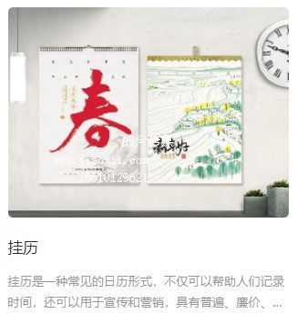 挂历是一种常见的日历形式,不仅可以帮助人们记录时间,还可以用于宣传和营销,具有普遍、廉价、色彩鲜艳和良好的视觉效果。