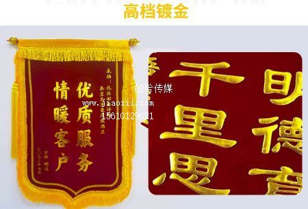 济南锦旗制作公司,为您详细介绍一下锦旗的尺寸及价格。按颜色来分,分枣红色与大红色。按工艺来分,分发泡与烫金。按尺寸来分,分60*90CM、70*110CM、80*120CM,具体价格详询客户索要。